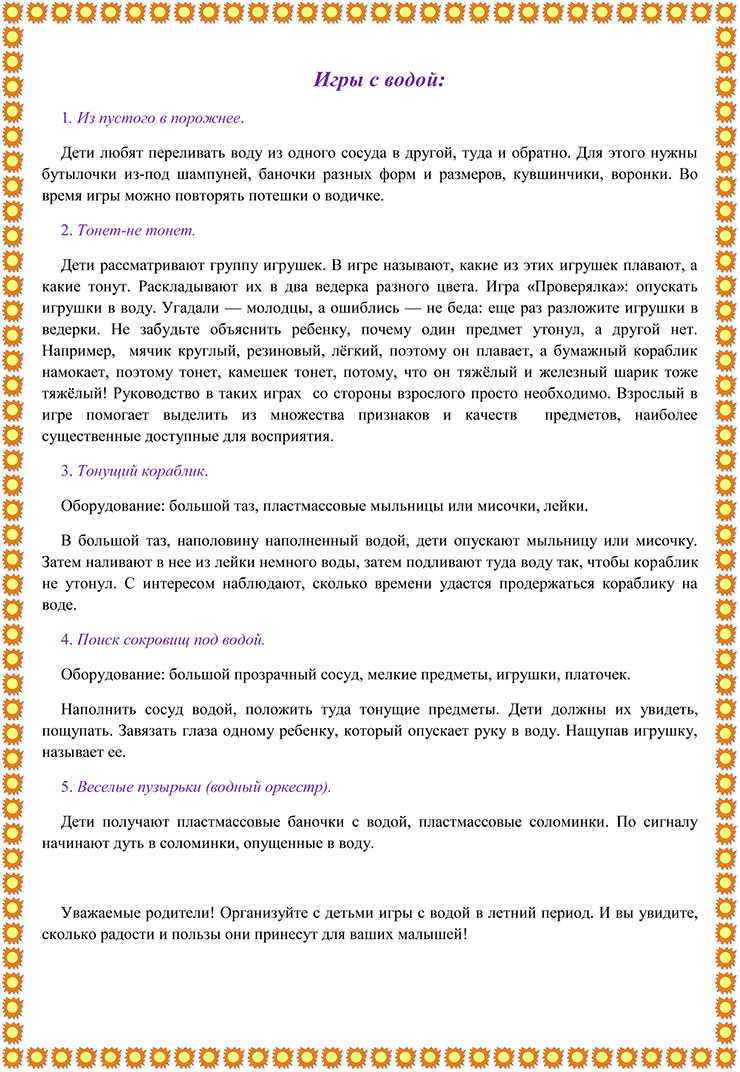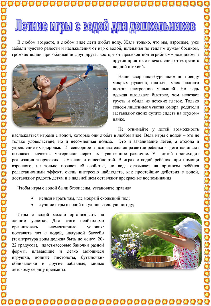 Летние игры с водой для дошкольников