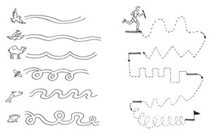 - Провести фигурную дорожку, соединив линию штриховки. При прохождении дорожки ребенку нужно как можно более точно следовать всем изгибам и поворотам линий.