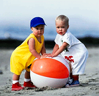 На пляж можно взять и большой надувной мяч, игры с которым придутся по нраву как дошколятам, так и более старшим детям. Игры с мячом способствуют развитию ловкости, реакции и координации движений.