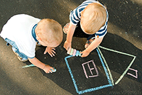 Это, например, рисование цветными мелками на асфальте — занятие, которое придется по душе и малышам, и детям школьного возраста. На асфальте можно не просто рисовать, но и изучать алфавит, математические понятия, создать лабиринт, поиграть в классики, нарисовать препятствия, дорожную разметку и, к примеру, изучить правила дорожного движения.